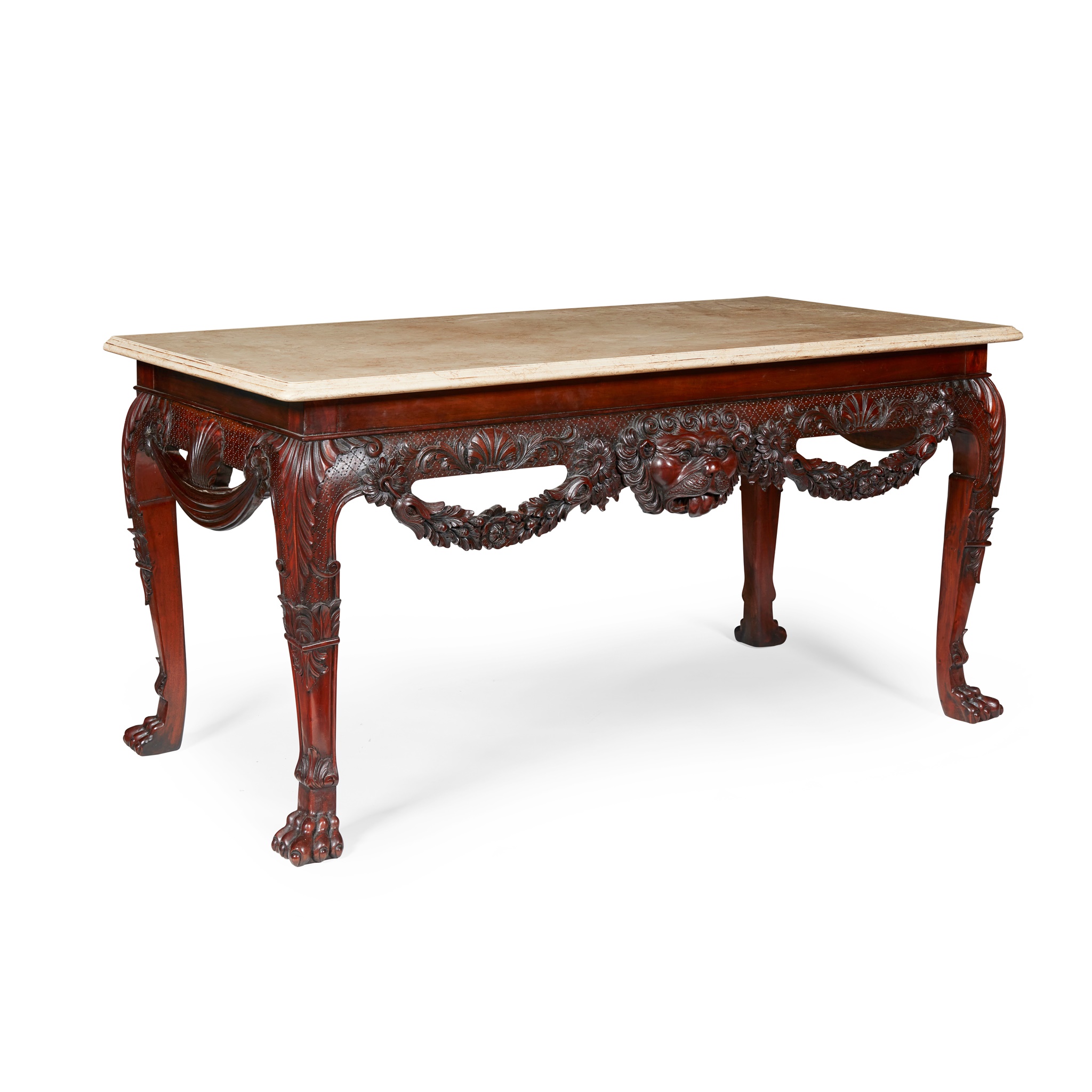 IRISH GEORGE III STYLE MAHOGANY MARBLE TOPPED HALL TABLE