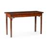 the rectangular top above a plain frieze and square chamfered legs with corner brackets