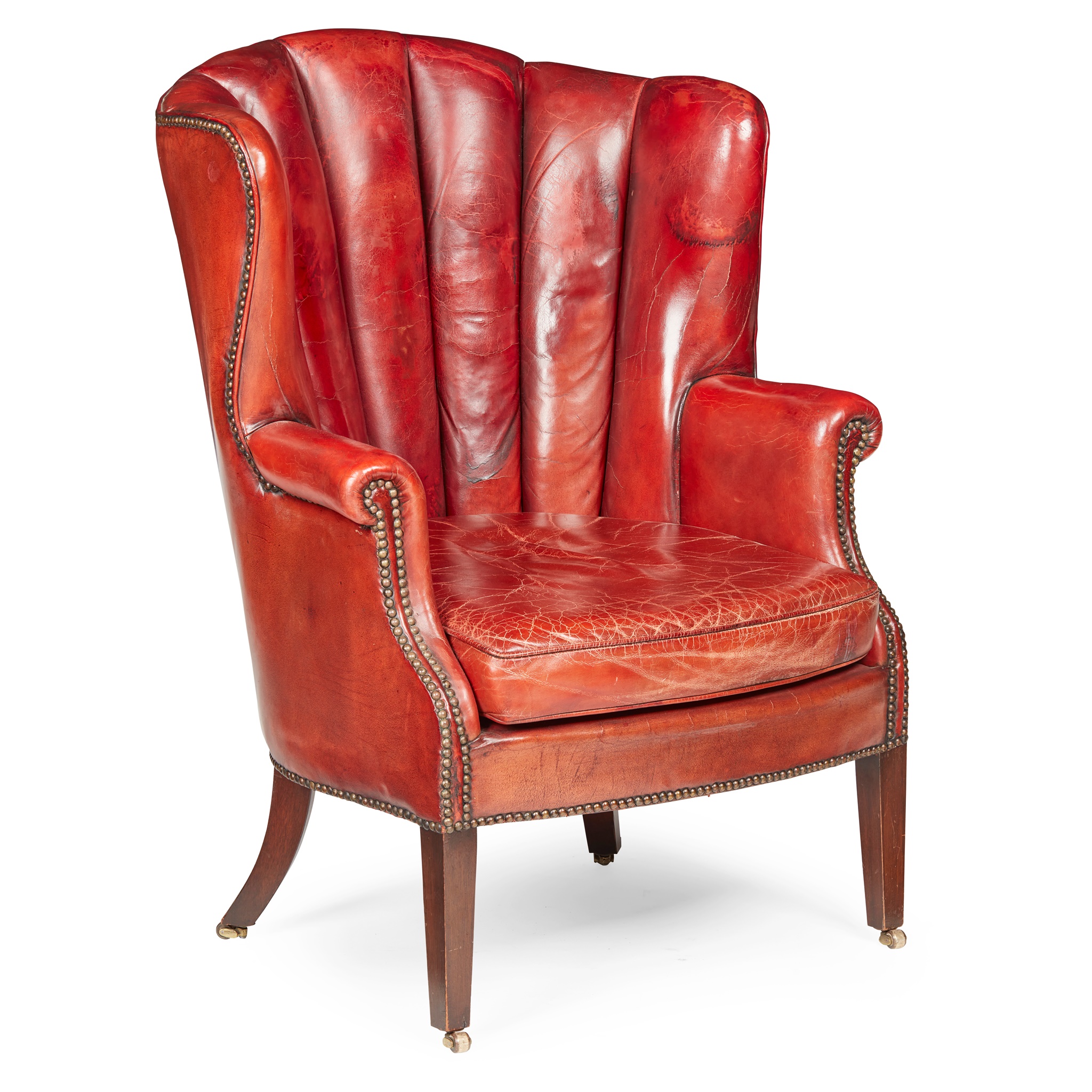 GEORGIAN STYLE CHANNEL-BACK RED LEATHER WING ARMCHAIR
