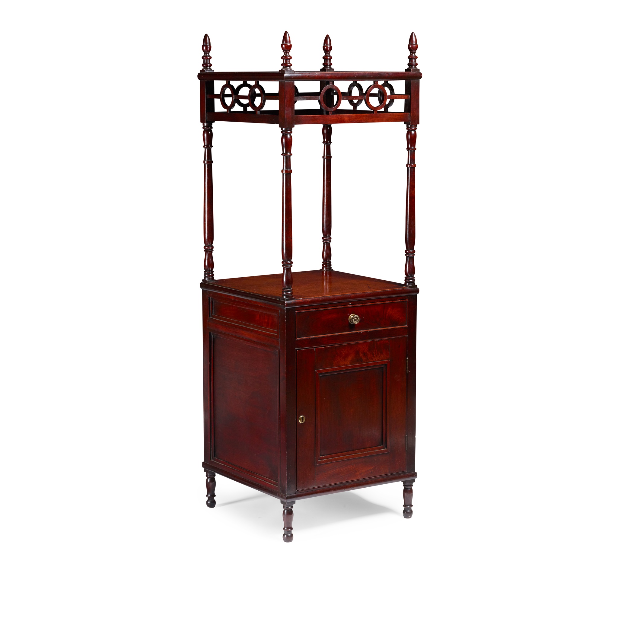 LATE GEORGE III MAHOGANY WHATNOT CABINET