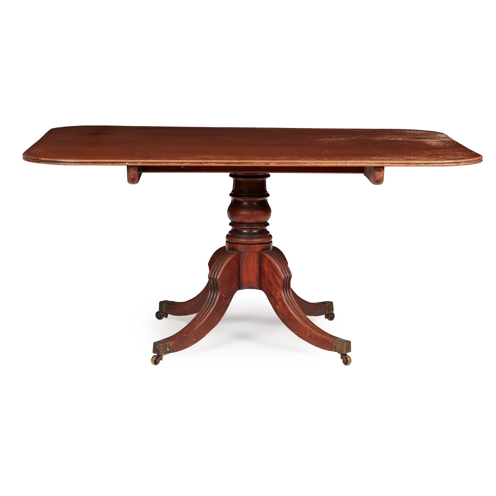 LATE GEORGE III MAHOGANY PEDESTAL DINING TABLE