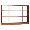 with two shelves and base with drawers outlined with banding, the centre sections of bowfront outline
