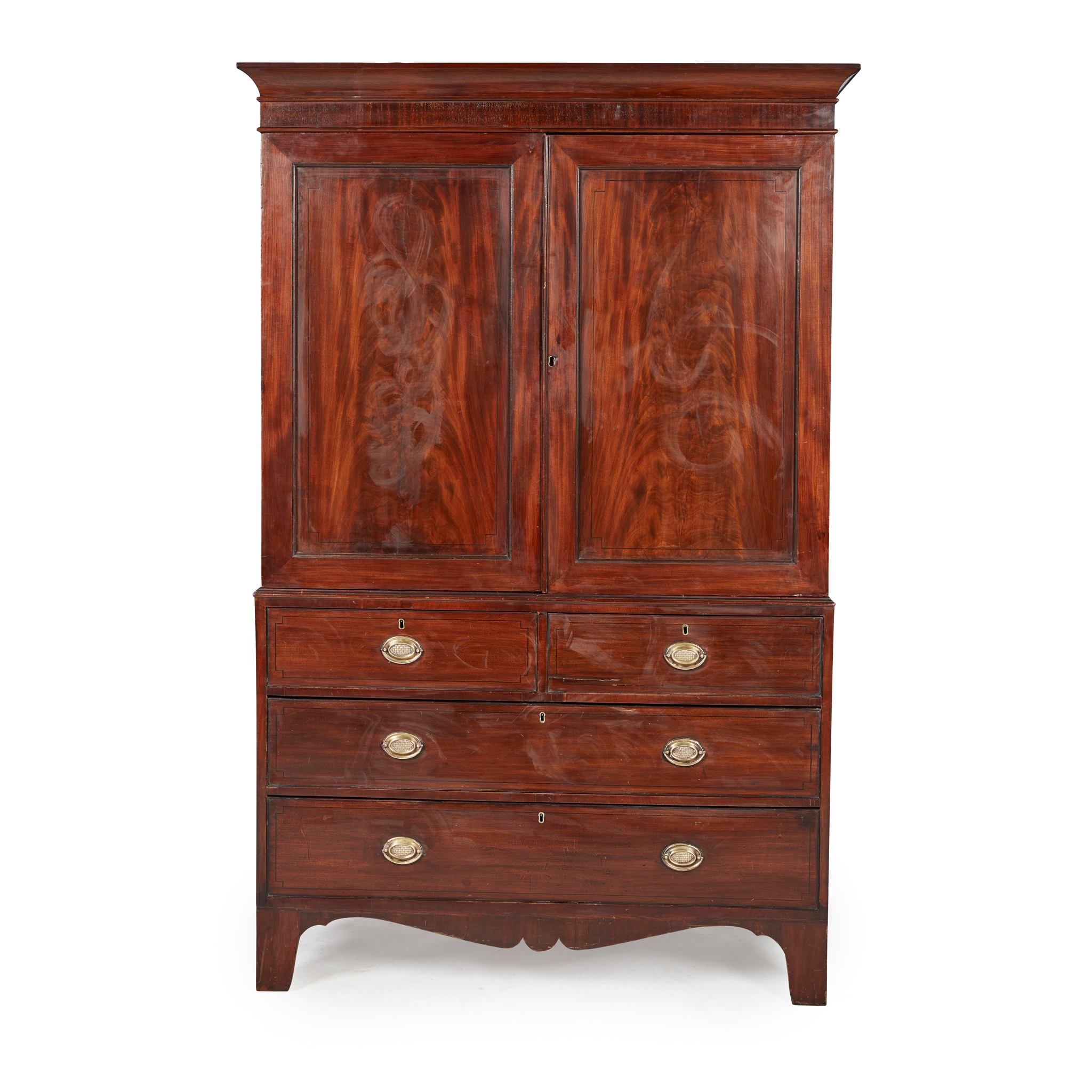 LATE GEORGE III MAHOGANY LINEN PRESS