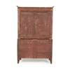 the cavetto moulded cornice above a pair of panel doors with ebony stringing opening to three sliding trays; on a base with two short over two long drawers and a shaped apron, raised on bracket feet