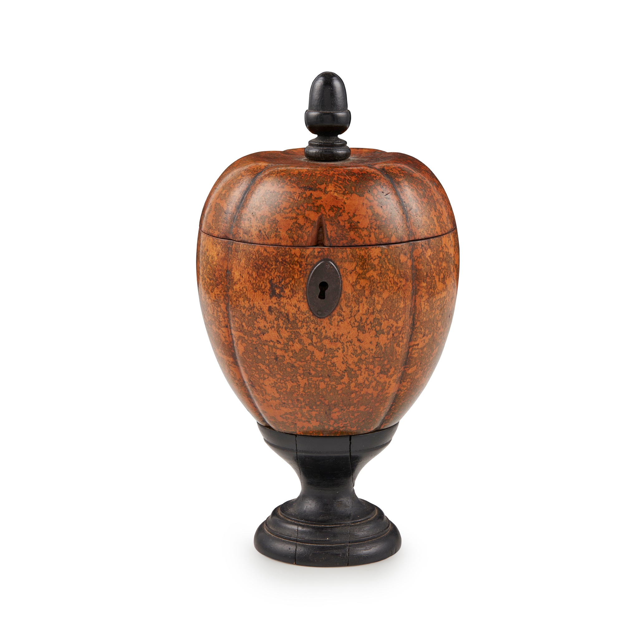 GEORGE III STAINED FRUITWOOD MELON-FORM TEA CADDY