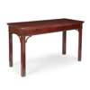 the rectangular top above a moulded plain frieze, raised on chamfered straight legs with pierced corner brackets