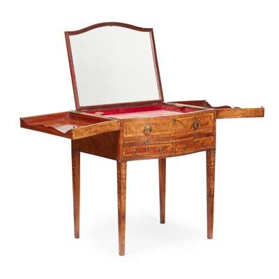 GEORGE III MAHOGANY, ROSEWOOD, AND MARQUETRY BIJOUTERIE TABLE Y