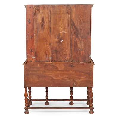 QUEEN ANNE ELM AND INLAID CHEST-ON-STAND