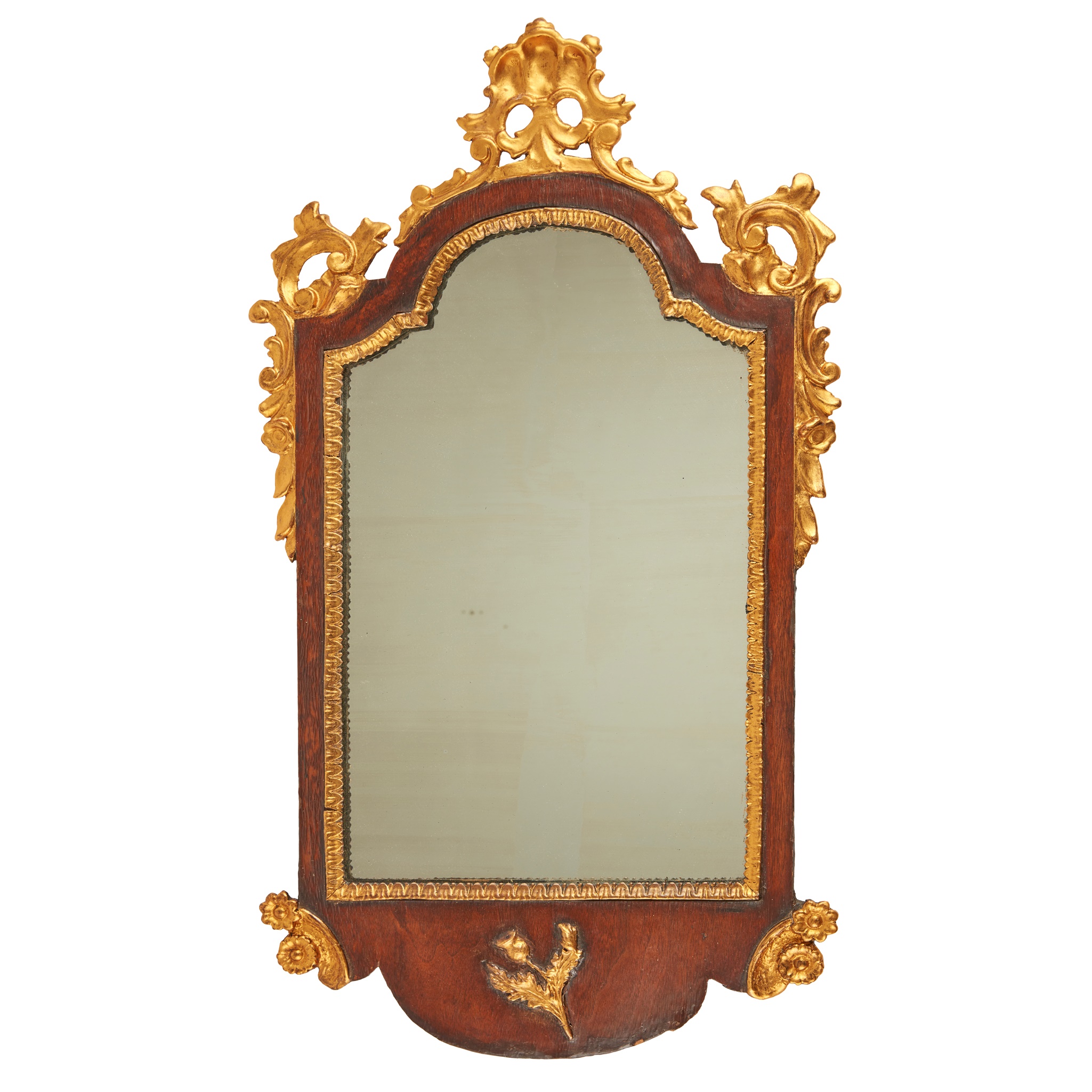 SCOTTISH GEORGE III WALNUT PARCEL-GILT MIRROR