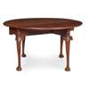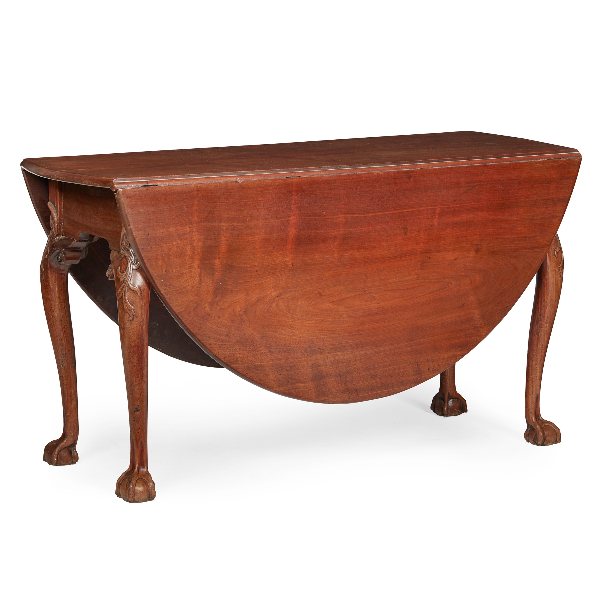 the oval top with drop leaf sides, raised on acanthus carved cabriole legs ending in claw and ball feet