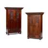 PAIR OF SMALL CARVED OAK PANEL CUPBOARDS