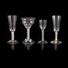 comprising a pair of ale glasses, with double-series twists, 17cm high; an ogee-bowled wine glass, 14.5cm high; and a sweetmeat glass, with double-ogee bowl and double-series twist, on a domed and folded foot, 15.5cm high