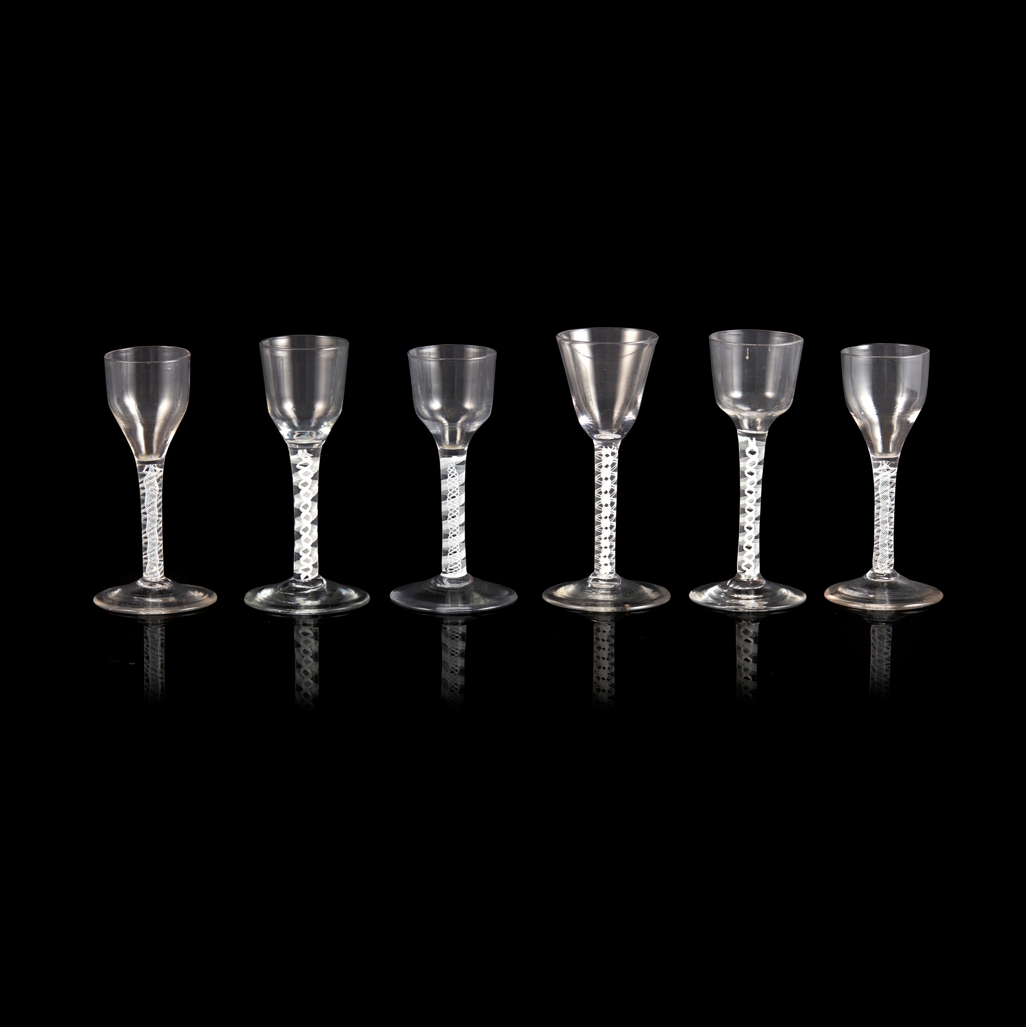 SIX GEORGIAN OPAQUE TWIST WINE GLASSES