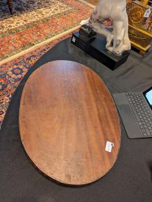 the oval tray with a chequer gallery and banding centred by a shell motif medallion