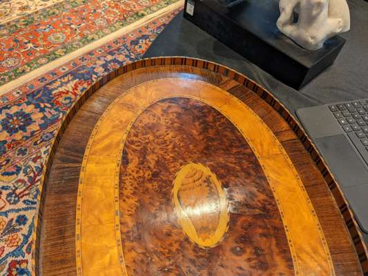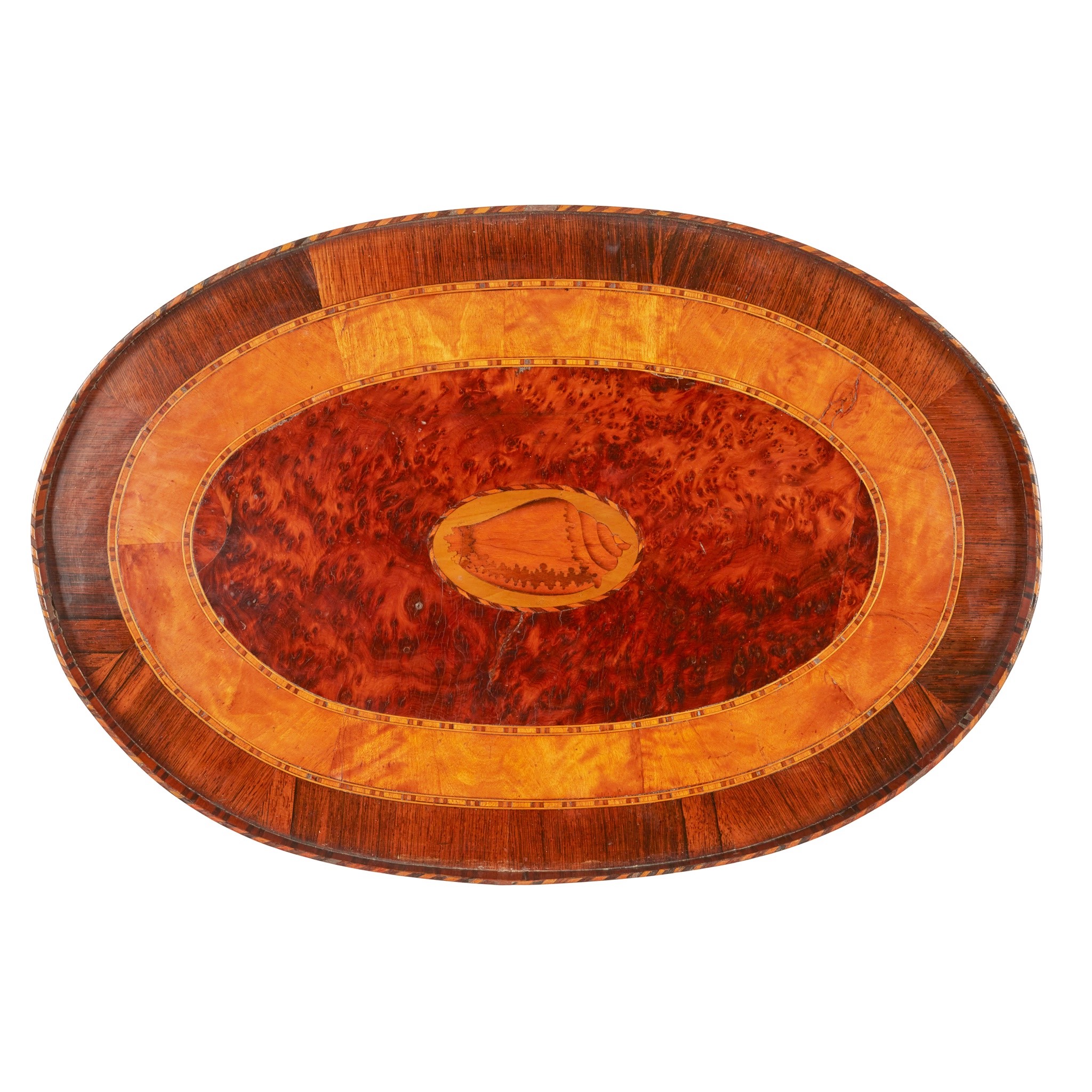 GEORGE III SATINWOOD, GONCALO ALVES, AND BURR YEW TRAY