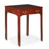 the rectangular top above a long frieze drawer, raised on square chamfered legs with brass castors