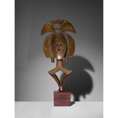 The making of figures to honour ancestors and allow continued communication with them was once widespread. The Kota peoples of modern Gabon and Republic of Congo produced particularly elaborate reliquaries which reduced the human form to a distinctive flattened shape. Their use of wood and hammered metal is completely unique among African sculptural forms.