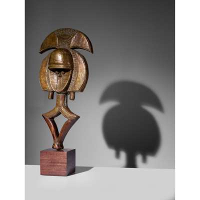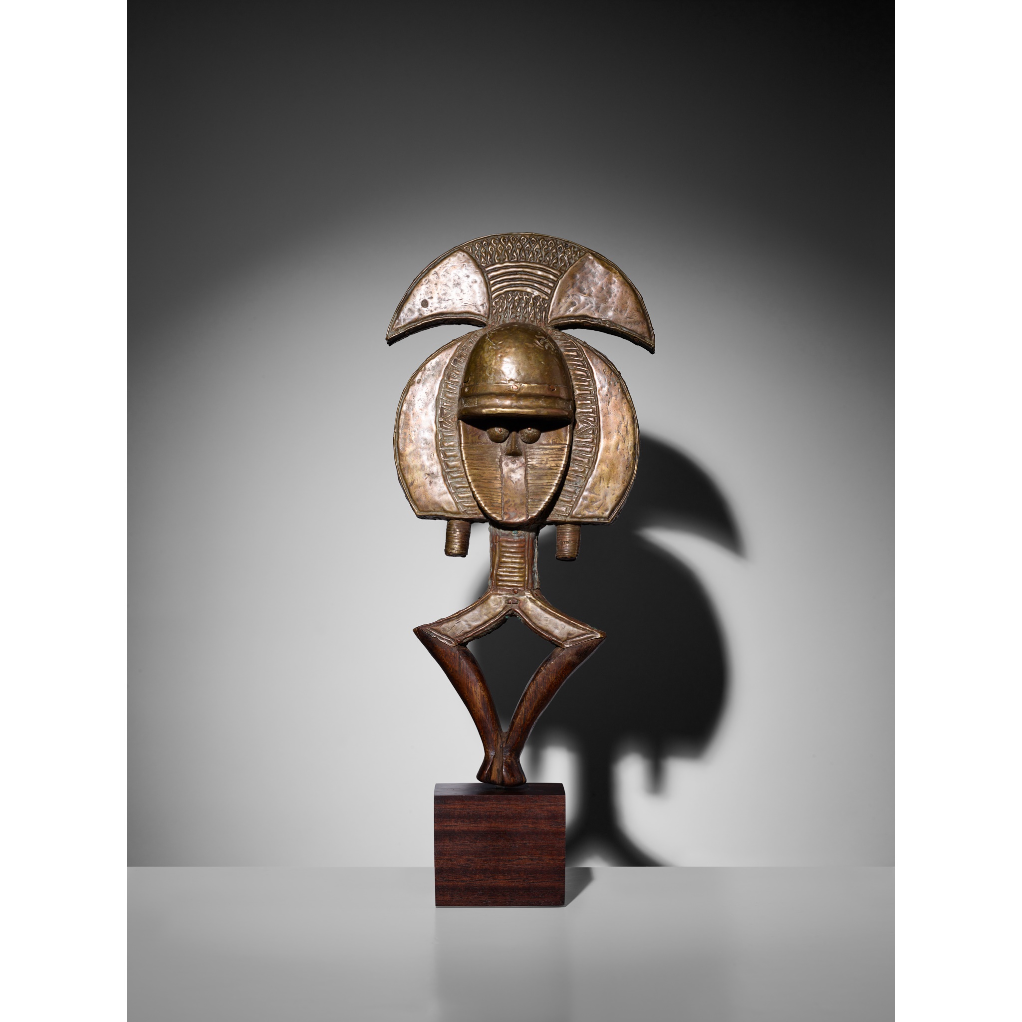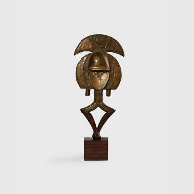 The key characteristic of these icons is the oversized head composed of radically simplified features. No two were the same however, the Kota artists worked within some basic rules based on tradition but enjoyed significant freedom to adapt their creation. The figure was accentuated with strips of copper & brass, this use of metal not only heightened associations of wealth and prosperity, but its shiny surface was also considered to scare off malevolent spirits.