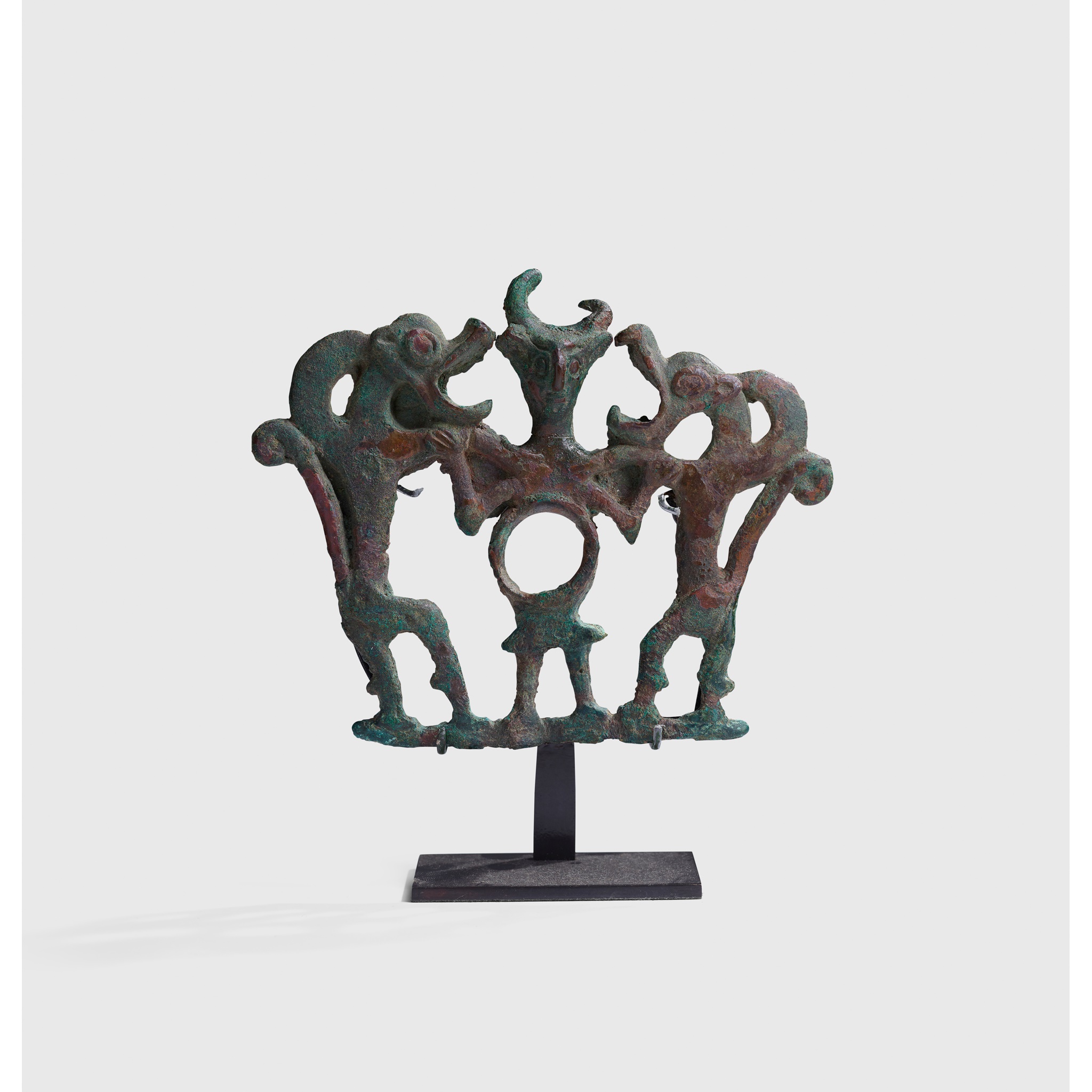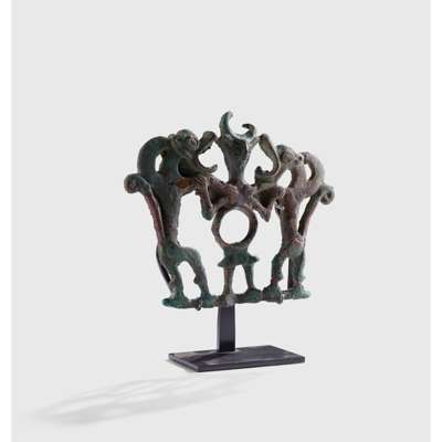 In the early first millennium B.C. the inhabitants of the Zagros Mountains to the north of Persia produced a rich variety of bronze objects; from weaponry and standards to vessels and horse tack. The magnificence of the items associated with equestrianism, such as the present example, point to the nomadic lifestyle of the people who fashioned them.