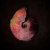 specimen of Placenticeras meeki showing iridescence of red, green, yellow and orange to both sides