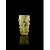 pale green glass, blown in three-part mould with separate base section, standing on a flat base with concentric ring and dot, the body flaring subtly, decorated with five rows of eight almond-shaped “lotus-bud” bosses in relief