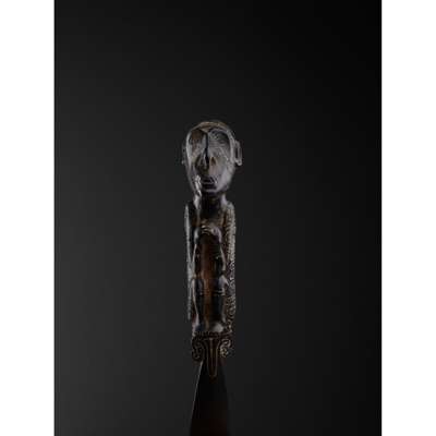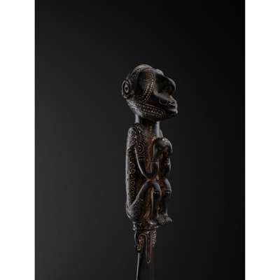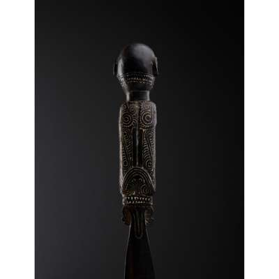 The names of the vast majority of traditional Oceanic artists are lost to time. One noted exception is the master carver Mutuaga (fl. 1860’s - c. 1920), who achieved great renown in his own lifetime for the quality and poignancy of his work. Born in southeastern New Guinea c. 1860, Mutuaga worked in the Massim tradition of producing spatulas for the chewing of betel nut, a mild stimulant.
