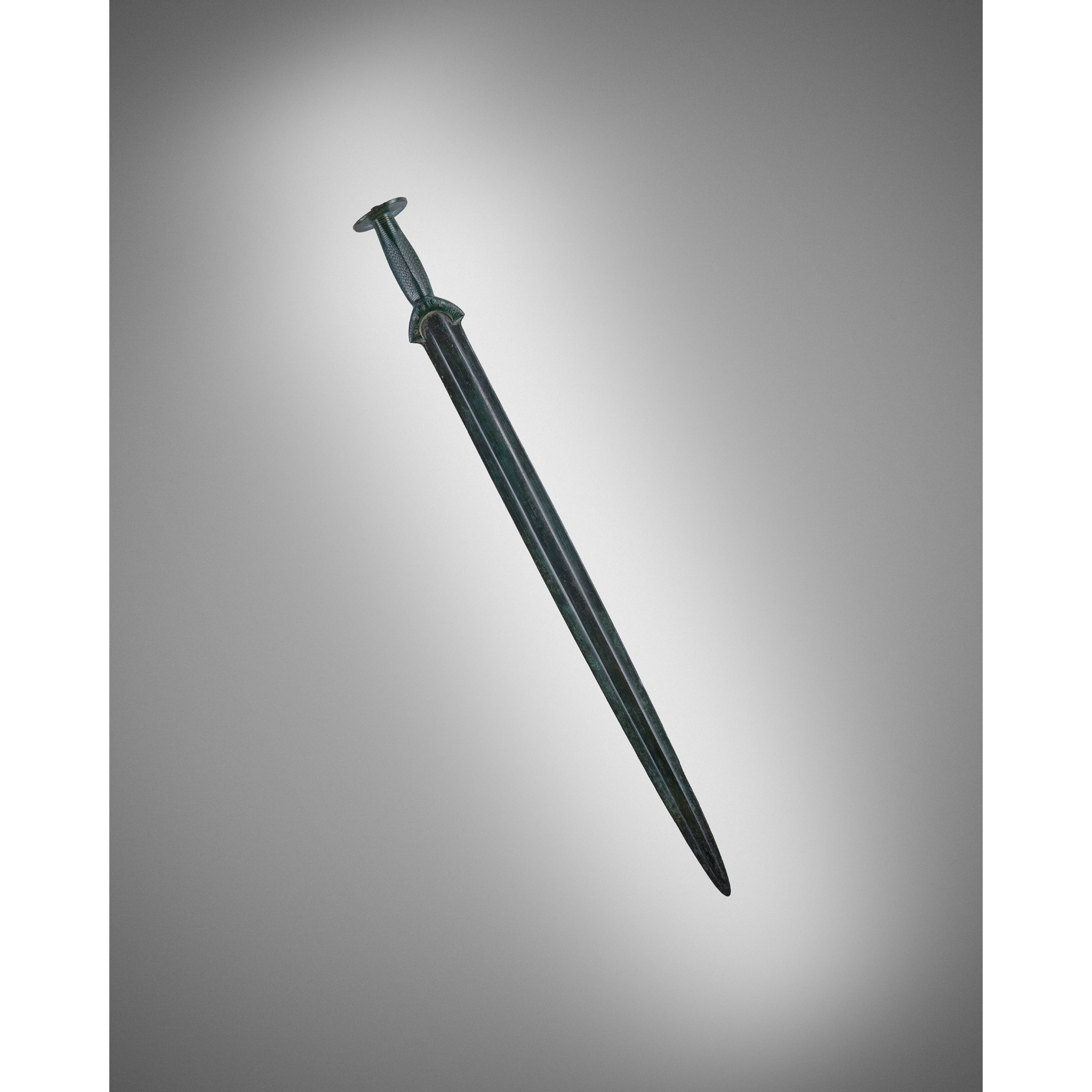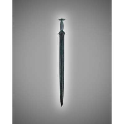 This stunning sword dates to the Late Bronze Age, an era in which bronze working technology was refined to its peak. It was in this period that multiple piece moulds and lost wax casting was introduced - techniques evidenced in the present example. The skill of the smith who produced this magnificent weapon is fully in evidence, an item of warfare and prestige, it is undoubtedly also a work of art.
