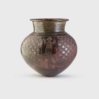 Ladi Kwali is perhaps the most renowned African potter of the last one-hundred years. A pioneer of African ceramic art modernism, she found international acclaim for her works, which melded the traditional skills she had been taught as a child with use of new materials and firing techniques. This resulted in heavier vessels that could no longer function as water storage pots, but rather served as fine art pieces. Kwali's freehand decoration of her works incorporated indigenous motifs of various animals. Beautifully expressive, her works bridge African and Western influences.