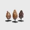 knapped flint, each stone of ovate form, displaying rich caramel hues and raised on a bespoke mount (3)