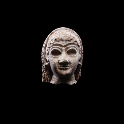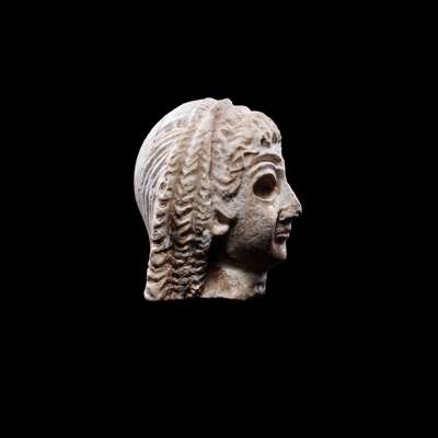 SUMERIAN HEAD OF A FEMALE WORSHIPPER