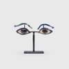 composed of white sclerae overlaid with dark glass to form the iris, framed by deep blue faience brows seperate cosmetic lines above, raised on a bespoke mount