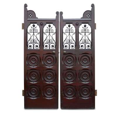 Note: The doors in this lot show similar characteristics to the wrought iron and wood gates at St, Pancras Station, London, designed by Scott in 1873