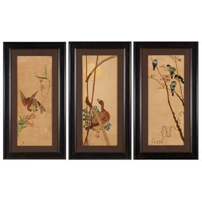 THREE AESTHETIC MOVEMENT ANGLO-JAPANESE EMBROIDERED PANELS, CIRCA 1880