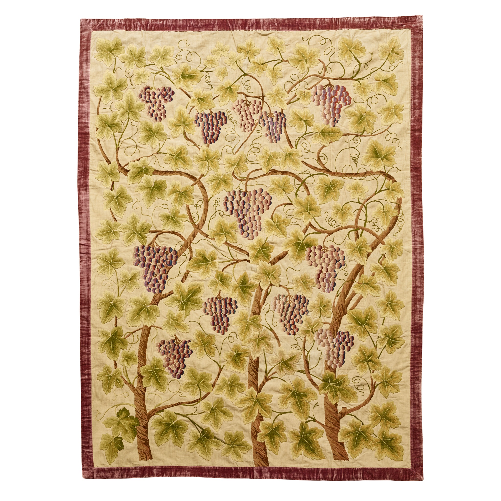 wool, reserved on a linen ground with original velvet border, mercerised cotton lining and hanging rings