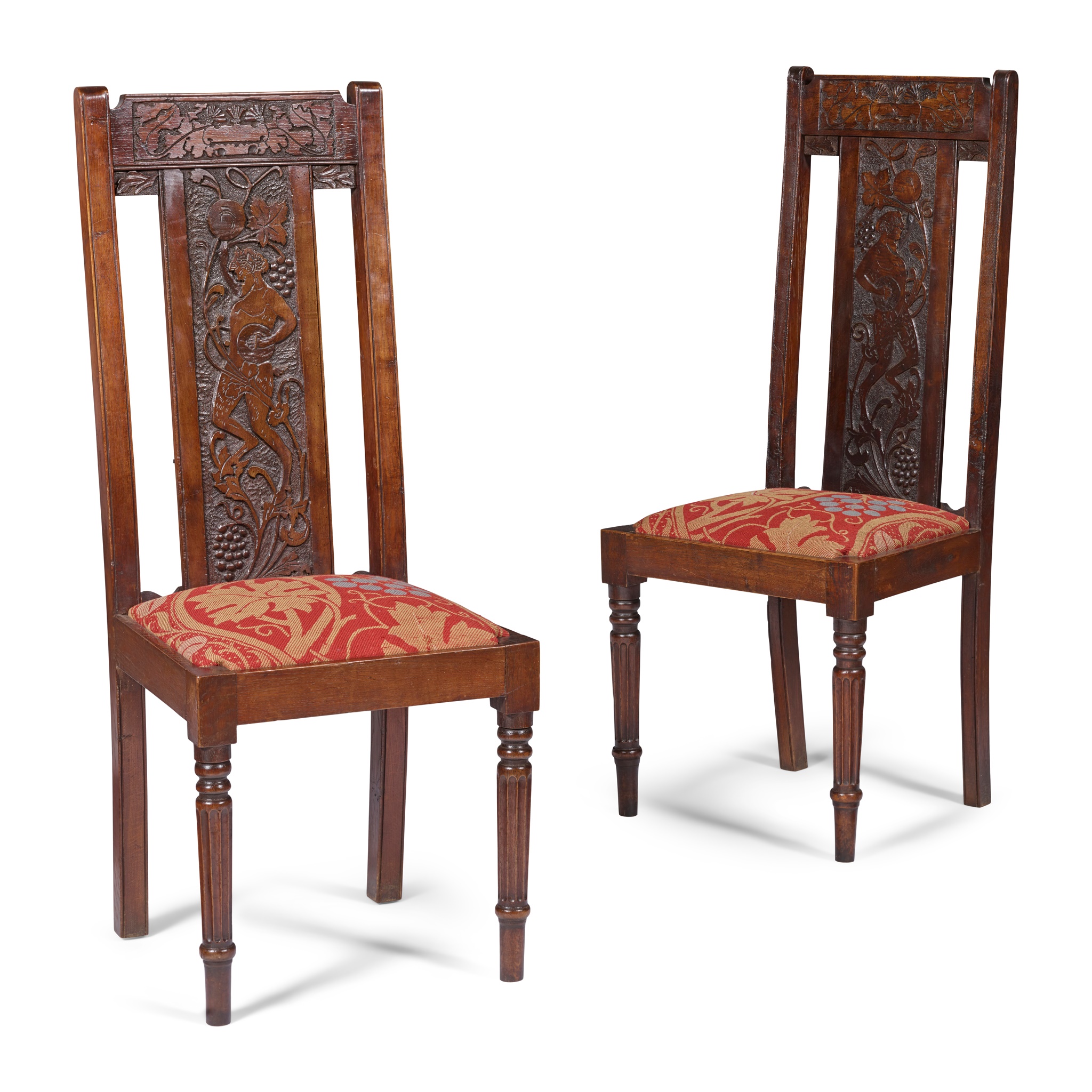 PAIR OF ARTS & CRAFTS ‘BACCHANALIAN’ TALL CHAIRS, CIRCA 1900