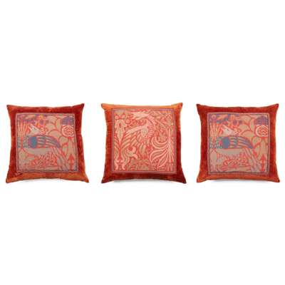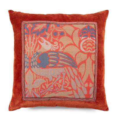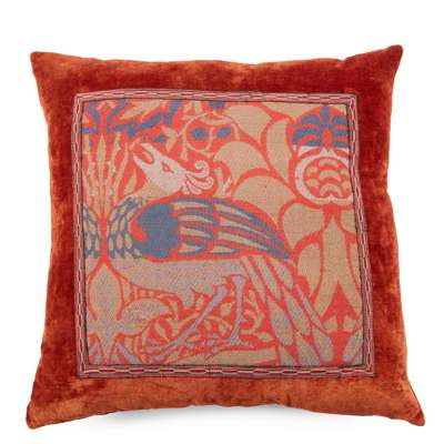THREE ARTS & CRAFTS ‘PEACOCK & DRAGON’ PATTERN CUSHIONS, THE FABRIC CIRCA 1878
