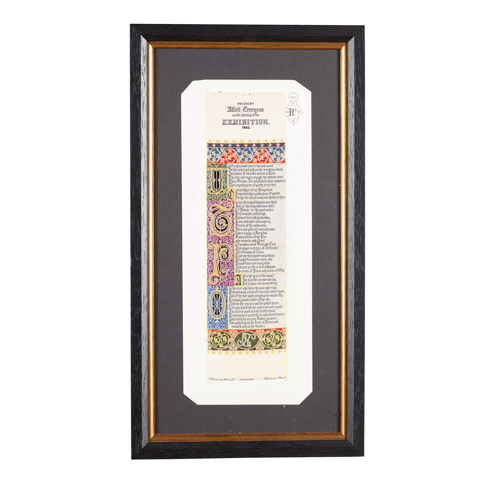 'THE ODE BY ALFRED TENNYSON' , EXHIBITION RIBBON, DATED 1862