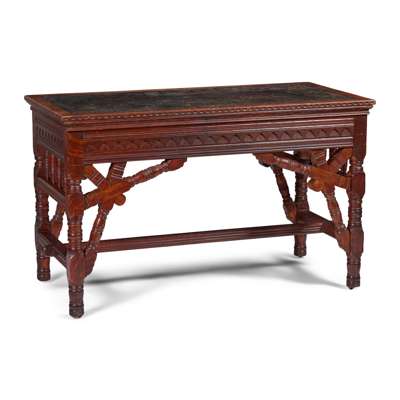 Literature: Cooper, J., Victorian & Edwardian Furniture & Interiors, Thames & Hudson, London, 1987, p. 106, pl. 229 where a desk with comparable structural form is illustrated.