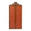oak, with silk damask panels and glazed silkwork and metal thread embroidery, carved inscription to frame WHOSE THE QUIRE INVISIBLE, WHOSE MUSIC IS THE GLADNESS OF THE WORLD