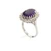 claw-set with an oval-cut amethyst in a border of round brilliant-cut diamonds, stamped 18ct