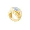 collet-set with an oval cabochon sapphire and two round brilliant-cut diamonds in a bold textured mount, unmarked; with accompanying report by The Gem & Pearl Laboratory dated 24.12.2021, numbered 20900, stating that the sapphire is of natural Sri Lankan origin, showing no evidence of heat treatment