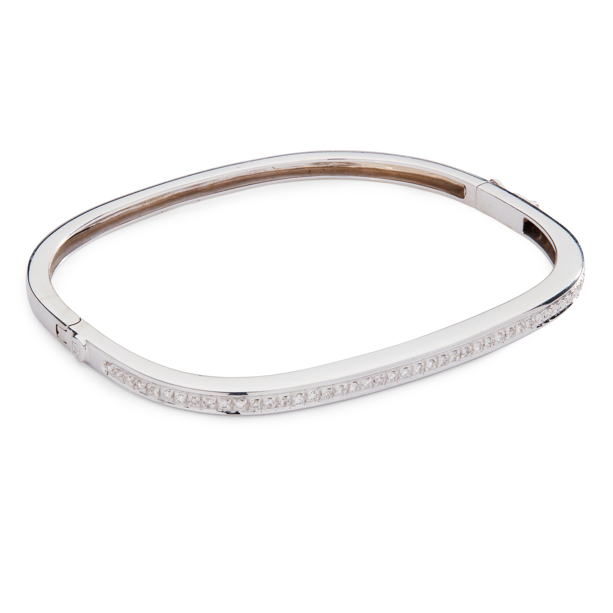 of hinged design, the front set with a row of round brilliant-cut diamonds, stamped 750