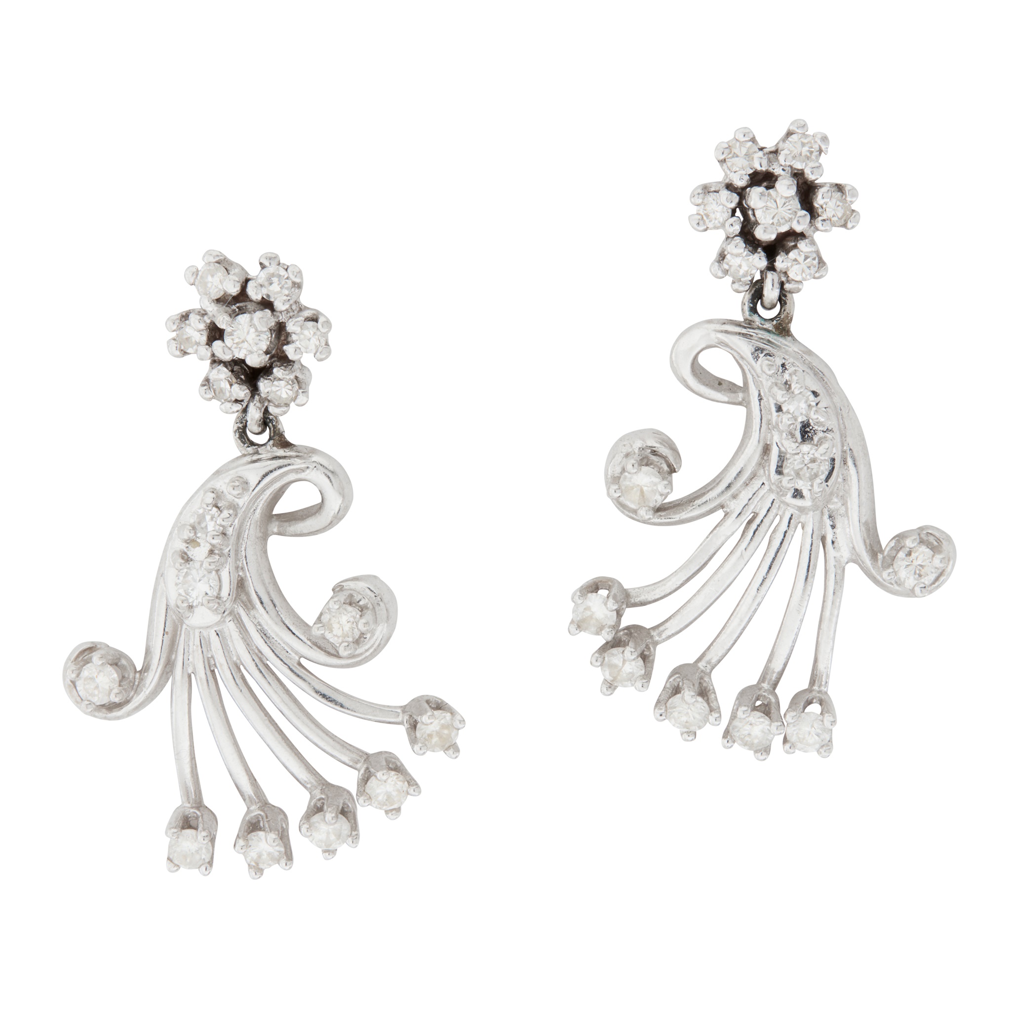 each of scrolling design, set throughout with graduated eight-cut diamonds, to post and butterfly fittings, unmarked