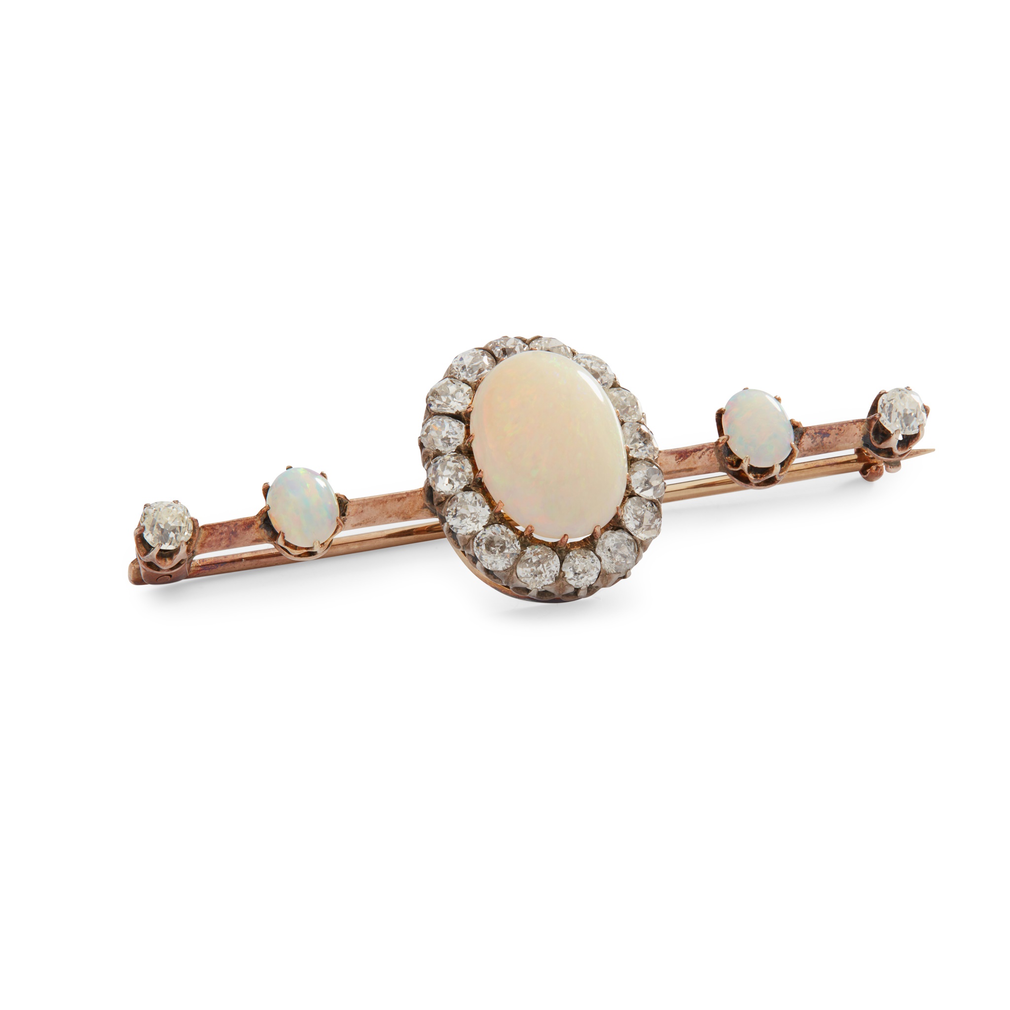 An opal and diamond bar brooch