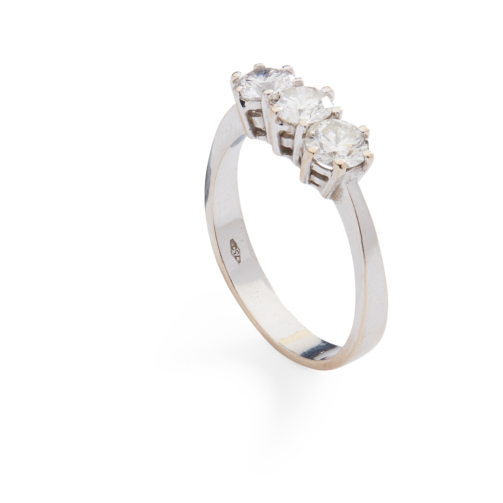 claw-set with three round brilliant-cut diamonds, stamped 750