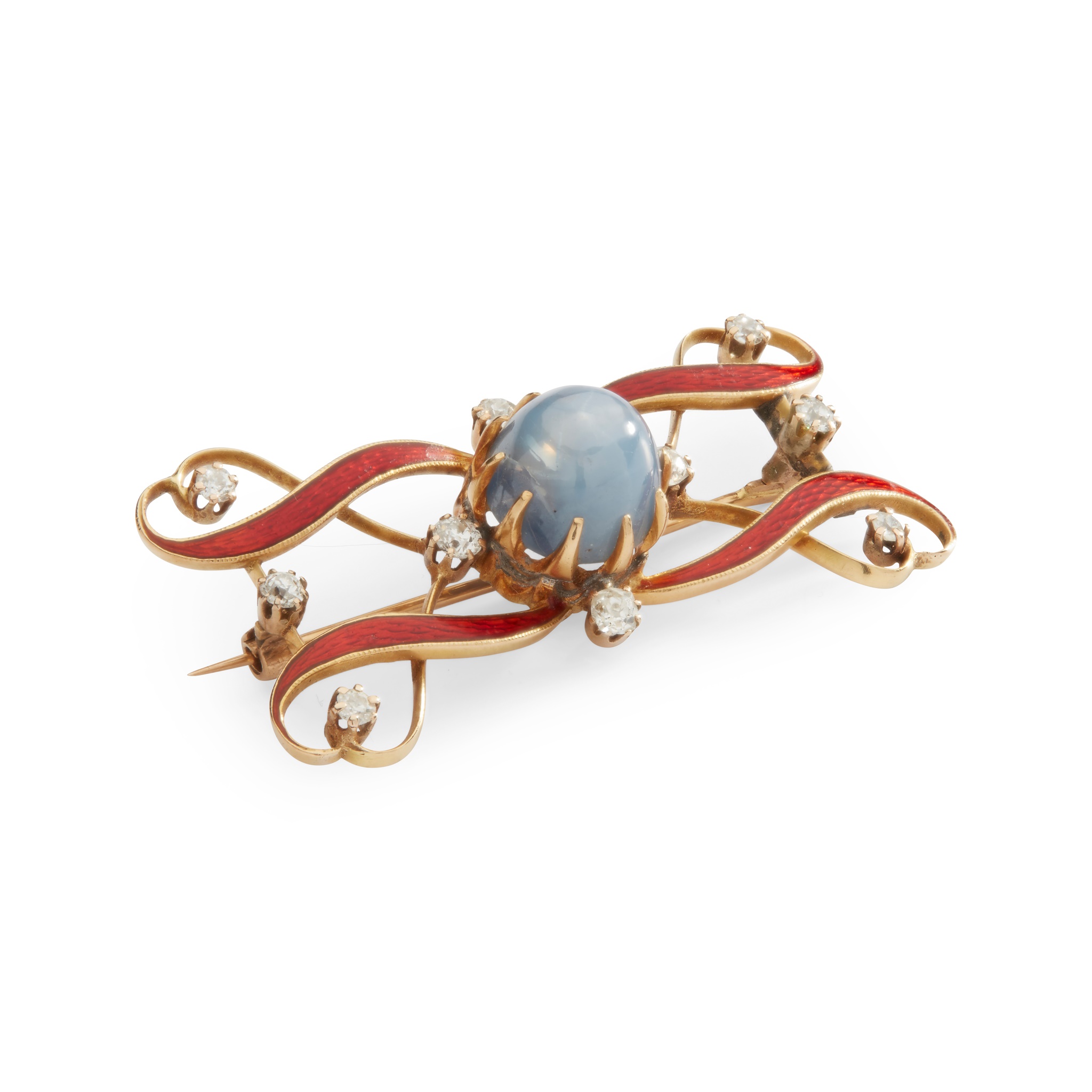An early 20th-century star-sapphire, diamond and enamel brooch