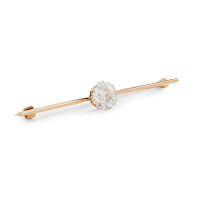 claw-set with a single old round-cut diamond, to a plain bar brooch, unmarked