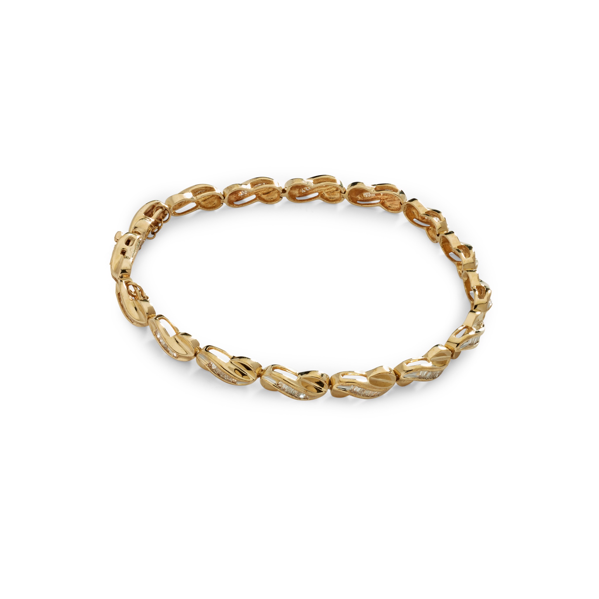 composed of scrolling links, each channel-set with baguette-cut diamonds, stamped 14k