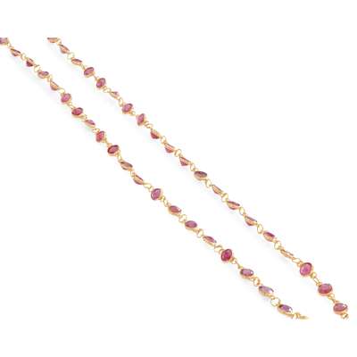 spectacle-set with a single row of round-cut rubies, hook clasp, unmarked