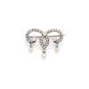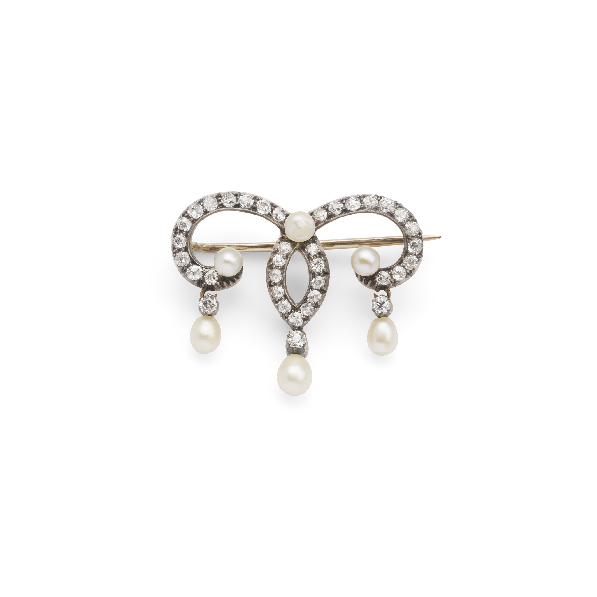 of scrolling design, set throughout with round-cut diamonds and (untested) pearls, unmarked, in a fitted tooled green leather box